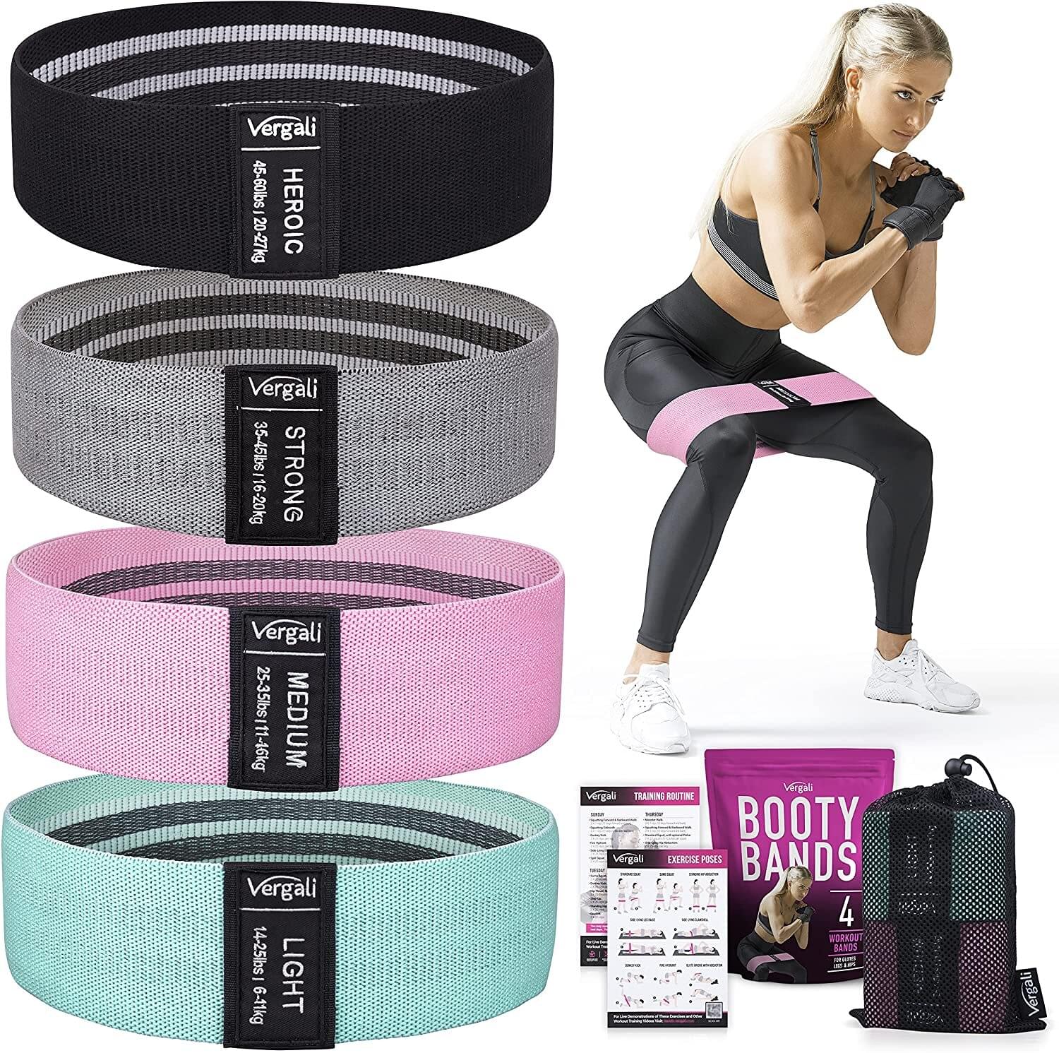 Set of 4 Non Slip Cloth Resistance Working Out Band for Glute, Thigh, Squat with Workout Resistant Fitness Training Guide to Exercise at Home or Gym